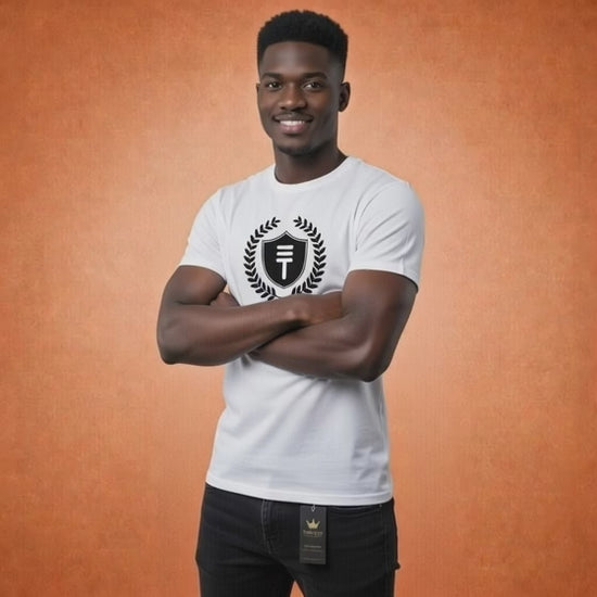 The Théard Shield T-Shirt – White Edition brings high-end fashion house energy to a clean, wearable essential. Featuring the signature Théard shield wrapped in a laurel wreath, this tee represents excellence, status, and timeless style.