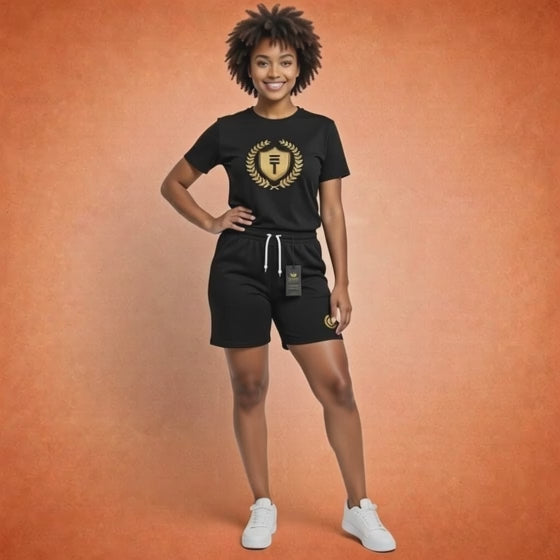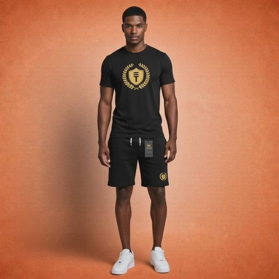 Step into effortless luxury with the Théard Crest Luxury Tee & Short Set — a clean, powerful two-piece designed for those who move with confidence.