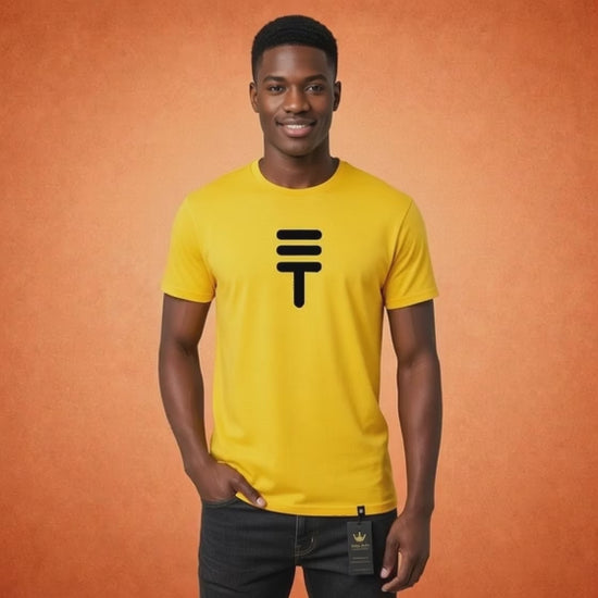 The Théard Icon Tee in Sun Yellow features our signature symbol in deep black for a high-contrast, modern look. This piece is made to stand out — simple, confident, and full of personality.