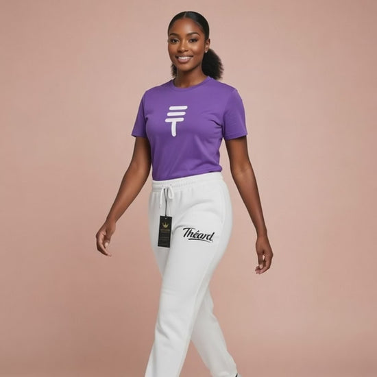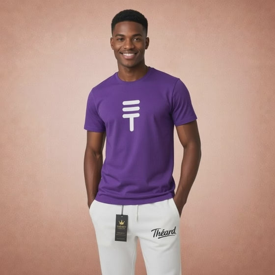 The Théard Royal Purple Set delivers standout energy with a luxury edge. A rich purple tee featuring the iconic Théard symbol paired with crisp white joggers creates a look that feels exclusive and unforgettable.